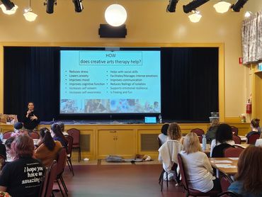 We had two one-hour classes with approximately 150 participants attend and engage in the creative arts therapy session.